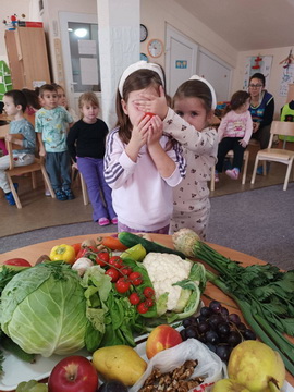 Održana je radionica, žmureći deca su trebala da pogode koje voće ili povrće drže u rukama.